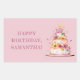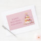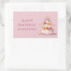 Pegatina rectangular de cumpleaños color rosa feliz