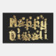 Pegatina Rectangular Feliz Diwali Black and Gold Elegant Stars Textos