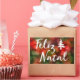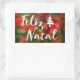 Pegatina Rectangular Feliz Natal con luces de árbol de bokeh