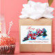 Este diseño vintage con sus pequeños elfos de bebé que duermen, resbalan y se deslizan por una colina nevada es una manera dulce de decorar las tarjetas o regalos de tus Navidades.