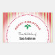 Este pegatina rectangular presenta un fondo de rayas verticales rojas y doradas, un círculo blanco acentuado con Navidades verdes holly y el texto: MERRY CHRISTMAS de la cocina de: (y texto de personalizable para añadir su nombre). Este pegatina personalizado es perfecto para sellar artículos de Navidad que has horneado como regalo para una persona especial.
