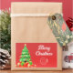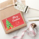 Los Pegatinas del logotipo corporativo de Feliz Navidad Moderno Holidays incluye un árbol de Navidad festivo con regalos con fondo rojo. Personalizado con su mensaje personalizado o utilice el texto "Feliz Navidad" en la moderna tipografía escrita a mano de escritura caligráfica y agregue su logotipo de negocios personalizado para su fiesta de vacaciones corporativa, favores de Navidades, swag de personal o regalos de cliente. Simplemente edite el texto en los cuadros de texto proporcionados. Diseñado por ©Evco Holidays www.zazzle.com/store/evcoholidays