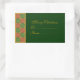 Un elegante pegatina de etiquetas de regalo de personalizado con arte de vacaciones rojo y verde con un patrón de flor de lis vintage en dorados restaurados de azulejos antiguos. Haga clic en Personalizar para cambiar fuentes, tamaño, color de fondo y más.