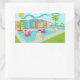 Pegatina Rectangular Fiesta de piscina de flamenco rosa gay retro
