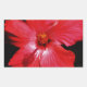 Pegatina Rectangular Flor de Hibiscus rojo rosado caliente en negro