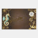 Pegatina Rectangular Fondo de madera con caballito de mar mecánico