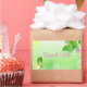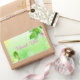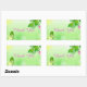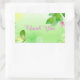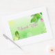 Pegatina Rectangular Fondo Verde Primavera Con Mariposa Rosa