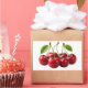 Pegatina Rectangular Fresh Red Cherries With Green Leaves Sticker