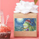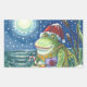 Pegatina Rectangular FROG SANTA EN LOG, HOLLIDAY CHRISTMAS STICKERS Rec