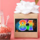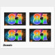 Este divertido y vibrante diseño de pegatinas presenta un patrón colorido inspirado en fuegos artificiales de celebración, junto con el número "81