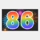 Este divertido y vibrante diseño de pegatina presenta un patrón colorido inspirado en fuegos artificiales de celebración, junto con el número "86" que tiene un patrón de gradiente inspirado en un arcoíris multicolor, sobre un fondo de color negro. Las pegatinas como esta podrían ser dadas como un pequeño regalo mientras se celebra el octogésimo sexto cumpleaños de alguien, o quizás para el octogésimo sexto aniversario de bodas de una pareja, o algún otro evento 86. [~Z0000324]