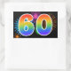 Este divertido y vibrante diseño de pegatinas presenta un patrón colorido inspirado en fuegos artificiales de celebración, junto con el número "60" que tiene un patrón de gradiente multicolor como un arcoíris, sobre un fondo de color negro. Las pegatinas como esta podrían ser utilizadas en una fiesta que celebre el sexagésimo cumpleaños de alguien, o quizás para el sexagésimo aniversario de bodas de una pareja, o algún otro evento del 60º aniversario.