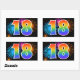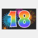 Este divertido y vibrante diseño de pegatinas presenta un patrón colorido inspirado en fuegos artificiales de celebración, junto con el número "18" que presenta un patrón de gradiente multicolor como un arcoíris, sobre un fondo de color negro. Las pegatinas como esta podrían ser dadas como un pequeño regalo mientras se celebra el cumpleaños número dieciocho de alguien, o quizás para el aniversario de bodas número dieciocho de una pareja, o algún otro evento número 18. [~Z0000324]