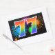 Este divertido y vibrante diseño de pegatinas presenta un colorido patrón inspirado en fuegos artificiales de celebración, junto con el número "77" que tiene un patrón de gradiente multicolor inspirado en el arcoíris, sobre un fondo de color negro. Las pegatinas como esta podrían ser dadas como un pequeño regalo mientras se celebra el septuagésimo séptimo cumpleaños de alguien, o quizás para el septuagésimo séptimo aniversario de bodas de una pareja, o algún otro evento 77. [~Z0000324]
