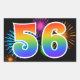 Este divertido y vibrante diseño de pegatinas presenta un colorido patrón inspirado en fuegos artificiales de celebración, junto con el número "56" con un patrón de gradiente inspirado en un arcoíris multicolor, sobre un fondo de color negro. Las pegatinas como esta podrían ser dadas como un pequeño regalo mientras se celebra el quincuagésimo sexto cumpleaños de alguien, o quizás para el quincuagésimo sexto aniversario de bodas de una pareja, o algún otro evento 56. [~Z0000324]