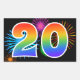 Este divertido y vibrante diseño pegatina presenta un colorido patrón inspirado en fuegos artificiales de celebración, junto con el número "20" que presenta un patrón gradiente inspirado en el arcoiris multicolor, sobre un fondo de color negro. Pegatinas como este podrían ser dados como un pequeño regalo mientras celebran el vigésimo cumpleaños de alguien, o tal vez por el vigésimo aniversario de una pareja, o algún otro acontecimiento número 20. [~Z0000324]