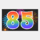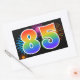 Este divertido y vibrante diseño pegatina presenta un colorido patrón inspirado en fuegos artificiales de celebración, junto con el número "85", con un patrón gradiente inspirado en el arcoiris multicolor, sobre un fondo de color negro. Pegatinas como este podrían ser usados en un fiesta que celebra el ochenta y quinto cumpleaños de alguien, o tal vez por el ochenta y quinto aniversario del boda de una pareja, o algún otro evento del 85. [~Z0000324]