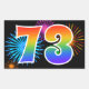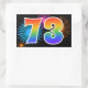 Este divertido y vibrante diseño pegatina presenta un patrón colorido inspirado en fuegos artificiales de celebración, junto con el número "73", con un patrón gradiente inspirado en el arcoiris multicolor, sobre un fondo de color negro. Pegatinas como este pueden ser dados como un pequeño regalo mientras celebran el septuagésimo tercer cumpleaños de alguien, o tal vez por el setenta y tercer aniversario del boda de una pareja, o algún otro evento del 73. [~Z0000324]