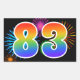 Este divertido y vibrante diseño de pegatinas presenta un patrón colorido inspirado en fuegos artificiales de celebración, junto con el número "83" que presenta un patrón de gradiente inspirado en arcoíris multicolor, sobre un fondo de color negro. Las pegatinas como esta podrían ser dadas como un pequeño regalo mientras se celebra el cumpleaños número ochenta y tres de alguien, o quizás para el aniversario número ochenta y tres de bodas de una pareja, o algún otro evento número 83. [~Z0000324]