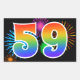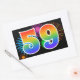 Este divertido y vibrante diseño de pegatina presenta un colorido patrón inspirado en fuegos artificiales de celebración, junto con el número "59" con un patrón de gradiente inspirado en arcoíris multicolor, sobre un fondo de color negro. Pegatinas como esta podrían ser entregadas como un pequeño regalo mientras se celebra el cumpleaños número cincuenta y nueve de alguien, o quizás para el aniversario de bodas número cincuenta y nueve de una pareja, o algún otro evento número 59. [~Z0000324]