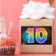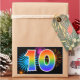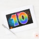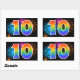 Este diseño de pegatina divertido y vibrante presenta un patrón colorido inspirado en fuegos artificiales de celebración, junto con el número "10" con un patrón de gradiente inspirado en arcoíris multicolor, sobre un fondo de color negro. Las pegatinas como esta podrían ser dadas como un pequeño regalo mientras se celebra el décimo cumpleaños de alguien, o quizás para un décimo aniversario de bodas de una pareja, o algún otro evento número 10. [~Z0000324]