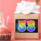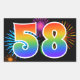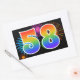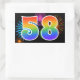 Este divertido y vibrante diseño de pegatinas presenta un colorido patrón inspirado en fuegos artificiales de celebración, junto con el número "58" que tiene un patrón de gradiente multicolor inspirado en el arcoíris, sobre un fondo de color negro. Las pegatinas como esta podrían utilizarse en una fiesta para celebrar el cumpleaños número cincuenta y ocho de alguien, o quizás para el aniversario número cincuenta y ocho de bodas de una pareja, o algún otro evento número 58. [~Z0000324]
