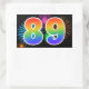 Este divertido y vibrante diseño de pegatinas presenta un patrón colorido inspirado en fuegos artificiales de celebración, junto con el número "89" que tiene un patrón de gradiente inspirado en un arcoíris multicolor, sobre un fondo de color negro. Las pegatinas como esta podrían ser utilizadas en una fiesta para celebrar el octogésimo noveno cumpleaños de alguien, o quizás para el octogésimo noveno aniversario de bodas de una pareja, o algún otro evento 89. [~Z0000324]