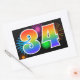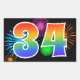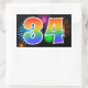Este divertido y vibrante diseño de pegatinas presenta un colorido patrón inspirado en fuegos artificiales de celebración, junto con el número "34" que presenta un patrón de gradiente similar a un arcoíris multicolor, sobre un fondo de color negro. Las pegatinas como esta podrían usarse en una fiesta para celebrar el cumpleaños número treinta y cuatro de alguien, o quizás para el aniversario de bodas número treinta y cuatro de una pareja, u otro evento número 34.