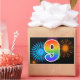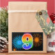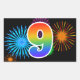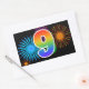 Este divertido y vibrante diseño de pegatinas presenta un colorido patrón inspirado en fuegos artificiales de celebración, junto con el número "9" que tiene un patrón de gradiente inspirado en arcoíris multicolor, sobre un fondo de color negro. Las pegatinas como esta podrían usarse en una fiesta para celebrar el noveno cumpleaños de alguien, o quizás para el noveno aniversario de bodas de una pareja, u otro evento número 9. [~Z0000324]