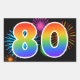 Este divertido y vibrante diseño de pegatinas presenta un patrón colorido inspirado en fuegos artificiales de celebración, junto con el número "80" con un patrón de gradiente inspirado en un arcoíris multicolor, sobre un fondo de color negro. Las pegatinas como esta podrían utilizarse en una fiesta para celebrar el ochenta cumpleaños de alguien, o quizás para el octogésimo aniversario de bodas de una pareja, u otro evento ochenta.