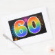 Este divertido y vibrante diseño de pegatinas presenta un patrón colorido inspirado en fuegos artificiales de celebración, junto con el número "60" que tiene un patrón de gradiente multicolor como un arcoíris, sobre un fondo de color negro. Las pegatinas como esta podrían ser utilizadas en una fiesta que celebre el sexagésimo cumpleaños de alguien, o quizás para el sexagésimo aniversario de bodas de una pareja, o algún otro evento del 60º aniversario.