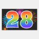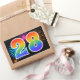 Este divertido y vibrante diseño de pegatinas presenta un colorido patrón inspirado en fuegos artificiales de celebración, junto con el número "28" que tiene un patrón de gradiente multicolor como un arcoíris, sobre un fondo de color negro. Las pegatinas como esta podrían ser utilizadas en una fiesta para celebrar el vigésimo octavo cumpleaños de alguien, o quizás para el vigésimo octavo aniversario de bodas de una pareja, u otro evento número 28.
