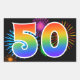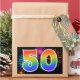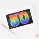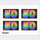 Este divertido y vibrante diseño de pegatinas presenta un colorido patrón inspirado en fuegos artificiales de celebración, junto con el número "50" con un patrón de gradiente de arcoíris multicolor, sobre un fondo de color negro. Las pegatinas como esta podrían utilizarse en una fiesta para celebrar el cumpleaños número cincuenta de alguien, o quizás para el aniversario de bodas número cincuenta de una pareja, o algún otro evento número 50.