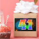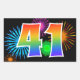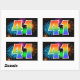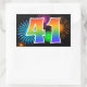 Este divertido y vibrante diseño de pegatinas presenta un colorido patrón inspirado en fuegos artificiales de celebración, junto con el número "41" que presenta un patrón de gradiente inspirado en un arcoíris multicolor, sobre un fondo de color negro. Las pegatinas como esta podrían utilizarse en una fiesta para celebrar el cumpleaños número cuarenta y uno de alguien, o quizás para el aniversario número cuarenta y uno de bodas de una pareja, o algún otro evento número 41.