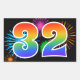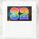Este divertido y vibrante diseño de pegatinas presenta un patrón colorido de fuegos artificiales de celebración, junto con el número "32" que presenta un patrón de gradiente multicolor como un arcoíris, sobre un fondo de color negro. Las pegatinas como esta podrían ser entregadas como un pequeño regalo mientras se celebra el cumpleaños número treinta y dos de alguien, o quizás para el trigésimo segundo aniversario de bodas de una pareja, o algún otro evento número 32. [~Z0000324]