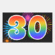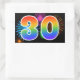 Este divertido y vibrante diseño de pegatinas presenta un patrón colorido inspirado en fuegos artificiales de celebración, junto con el número "30" que presenta un patrón de gradiente inspirado en un arcoíris multicolor, sobre un fondo de color negro. Las pegatinas como esta podrían darse como un pequeño regalo mientras se celebra el trigésimo cumpleaños de alguien, o quizás para el trigésimo aniversario de bodas de una pareja, o algún otro evento número 30.