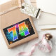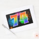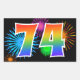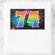 Este diseño de pegatina divertido y vibrante presenta un patrón colorido inspirado en fuegos artificiales de celebración, junto con el número "74" que tiene un patrón de gradiente de arcoíris multicolor, sobre un fondo de color negro. Las pegatinas como esta podrían ser utilizadas en una fiesta para celebrar el cumpleaños número setenta y cuatro de alguien, o quizás para el aniversario de bodas número setenta y cuatro de una pareja, o algún otro evento 74. [~Z0000324]