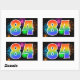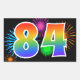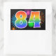 Este divertido y vibrante diseño de pegatina presenta un patrón inspirado en fuegos artificiales de celebración coloridos, junto con el número "84" que tiene un patrón de gradiente de arcoíris multicolor, sobre un fondo de color negro. Pegatinas como esta podrían ser dadas como un pequeño regalo mientras se celebra el cumpleaños número ochenta y cuatro de alguien, o quizás para el aniversario de bodas número ochenta y cuatro de una pareja, o algún otro evento 84. [~Z0000324]