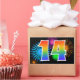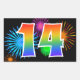 Este divertido y vibrante diseño de pegatinas presenta un colorido patrón inspirado en fuegos artificiales de celebración, junto con el número "14" que presenta un patrón de gradiente inspirado en arcoíris multicolor, sobre un fondo de color negro. Las pegatinas como esta podrían ser utilizadas en una fiesta para celebrar el cumpleaños número catorce de alguien, o quizás para celebrar el decimocuarto aniversario de bodas de una pareja, u otro evento relacionado con el número 14. [~Z0000324]