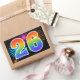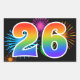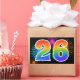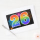 Este divertido y vibrante diseño de pegatinas presenta un patrón colorido inspirado en fuegos artificiales de celebración, junto con el número "26" que tiene un patrón de gradiente inspirado en arcoíris multicolor, sobre un fondo de color negro. Las pegatinas como esta podrían ser utilizadas en una fiesta para celebrar el vigésimo sexto cumpleaños de alguien, o quizás para el vigésimo sexto aniversario de bodas de una pareja, o algún otro evento número 26.