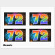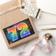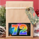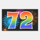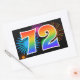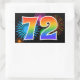 Este divertido y vibrante diseño de pegatinas presenta un patrón colorido inspirado en fuegos artificiales de celebración, junto con el número "72" que tiene un patrón de gradiente inspirado en arcoíris multicolor, sobre un fondo de color negro. Las pegatinas como esta podrían ser utilizadas en una fiesta para celebrar el septuagésimo segundo cumpleaños de alguien, o quizás para el septuagésimo segundo aniversario de bodas de una pareja, o algún otro evento número 72.