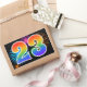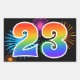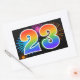 Este divertido y vibrante diseño de pegatinas presenta un colorido patrón inspirado en fuegos artificiales de celebración, junto con el número "23" que tiene un patrón de gradiente multicolor como un arcoíris, sobre un fondo de color negro. Las pegatinas como esta podrían ser utilizadas en una fiesta para celebrar el vigésimo tercer cumpleaños de alguien, o quizás para el vigésimo tercer aniversario de bodas de una pareja, u otro evento número 23. [~Z0000324]