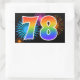 Este divertido y vibrante diseño de pegatina presenta un patrón colorido inspirado en fuegos artificiales de celebración, junto con el número "78" que tiene un patrón de gradiente inspirado en un arcoíris multicolor, sobre un fondo de color negro. Las pegatinas como esta podrían ser utilizadas en una fiesta para celebrar el septuagésimo octavo cumpleaños de alguien, o quizás para el septuagésimo octavo aniversario de bodas de una pareja, o algún otro evento 78. [~Z0000324]