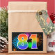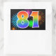Este diseño de pegatina divertido y vibrante presenta un patrón colorido inspirado en fuegos artificiales de celebración, junto con el número "81" que presenta un patrón de gradiente de arcoíris multicolor, sobre un fondo de color negro. Las pegatinas como esta podrían ser utilizadas en una fiesta para celebrar el cumpleaños número ochenta y uno de alguien, o quizás para el aniversario número ochenta y uno de bodas de una pareja, o algún otro evento 81. [~Z0000324]