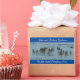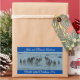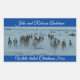Esta hermosa y original fotografía muestra una manada de ciervos de cola blanca corriendo por una carretera cubierta de nieve en la pradera. El texto dice Deseándote un Navidad de cola blanca.