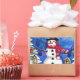 Original acuarela pintada por Sandra Gale de un feliz muñeco de nieve en un jardín de invierno cubierto de nieve. Gran diseño para jardineros, niños, madres y todo aquel que guste de las escenas de los nevados y de los jardines.