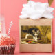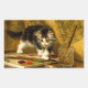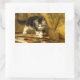 Pegatinas con la pintura al óleo de Henriëtte Ronner-Knip El joven artista (1821-1909). Un gatito blanco y negro juega con un juego de pintura y dos pinceles. Un regalo adorable para los amantes del gato y del romanticismo.