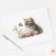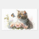 Pegatina Rectangular Gatito y mariposa en el jardín