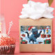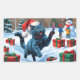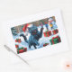 Pegatina Rectangular Gato azul ruso corre Nieve con Gorra Navidad