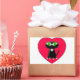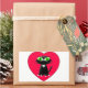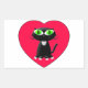 Pegatina Rectangular Gato Negro En Corazón Rojo
